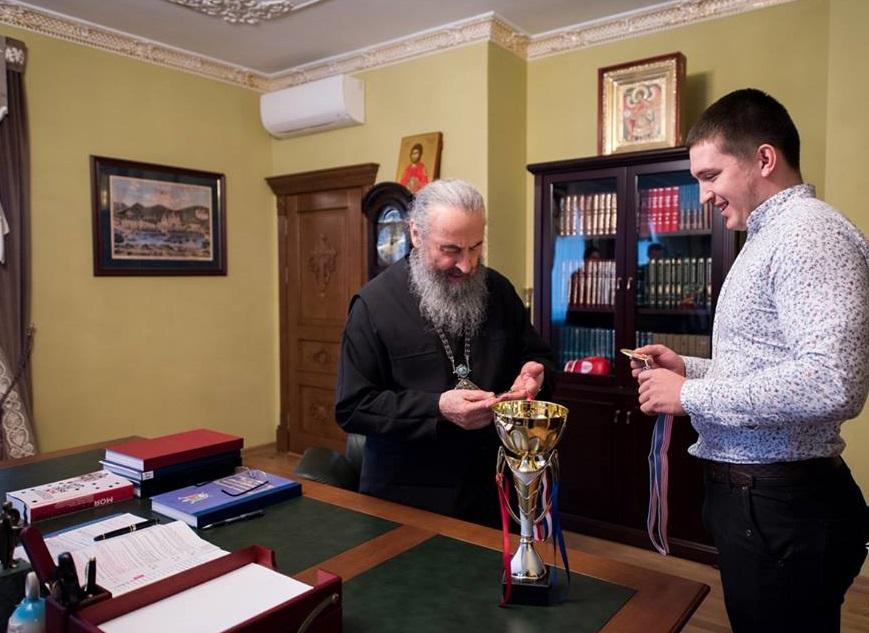 Студент киевской духовной академии Николай Ткачук после победы на международных соревнованиях по гиревому спорту «Arnold Kettlebell Classic-2018», которые состоялись недавно в городе Колумбус (штат Огайо, США) под патронатом Арнольда Шварценеггера, поблагодарил Предстоятеля УПЦ Митрополита Онуфрию за поддержку и молитвы.