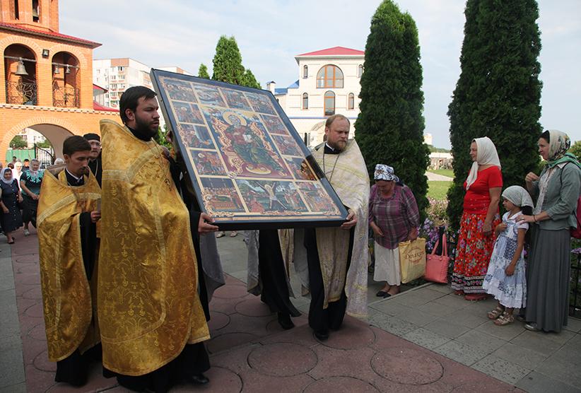 Встреча иконы проходила у ворот Андреевского храма. Сразу после внесения святого образа в храме началось чтение акафиста святому апостолу Андрею.