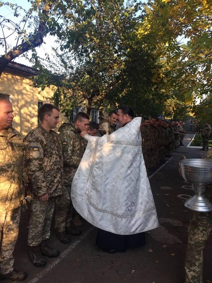 Священнослужитель совершил уставный молебен за мир в Украине и окропил святой водой военных / m-church.org.ua